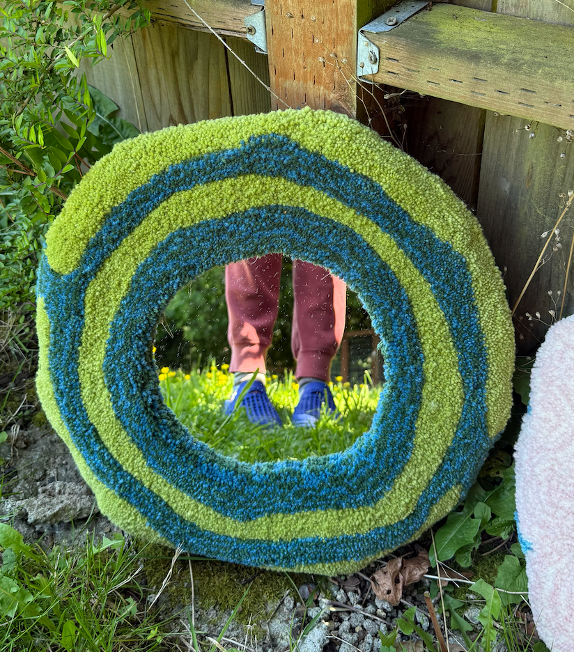Two green hues intertwined. Hand-sketched and tufted with all New Zealand wool. Made in Bellingham, WA.