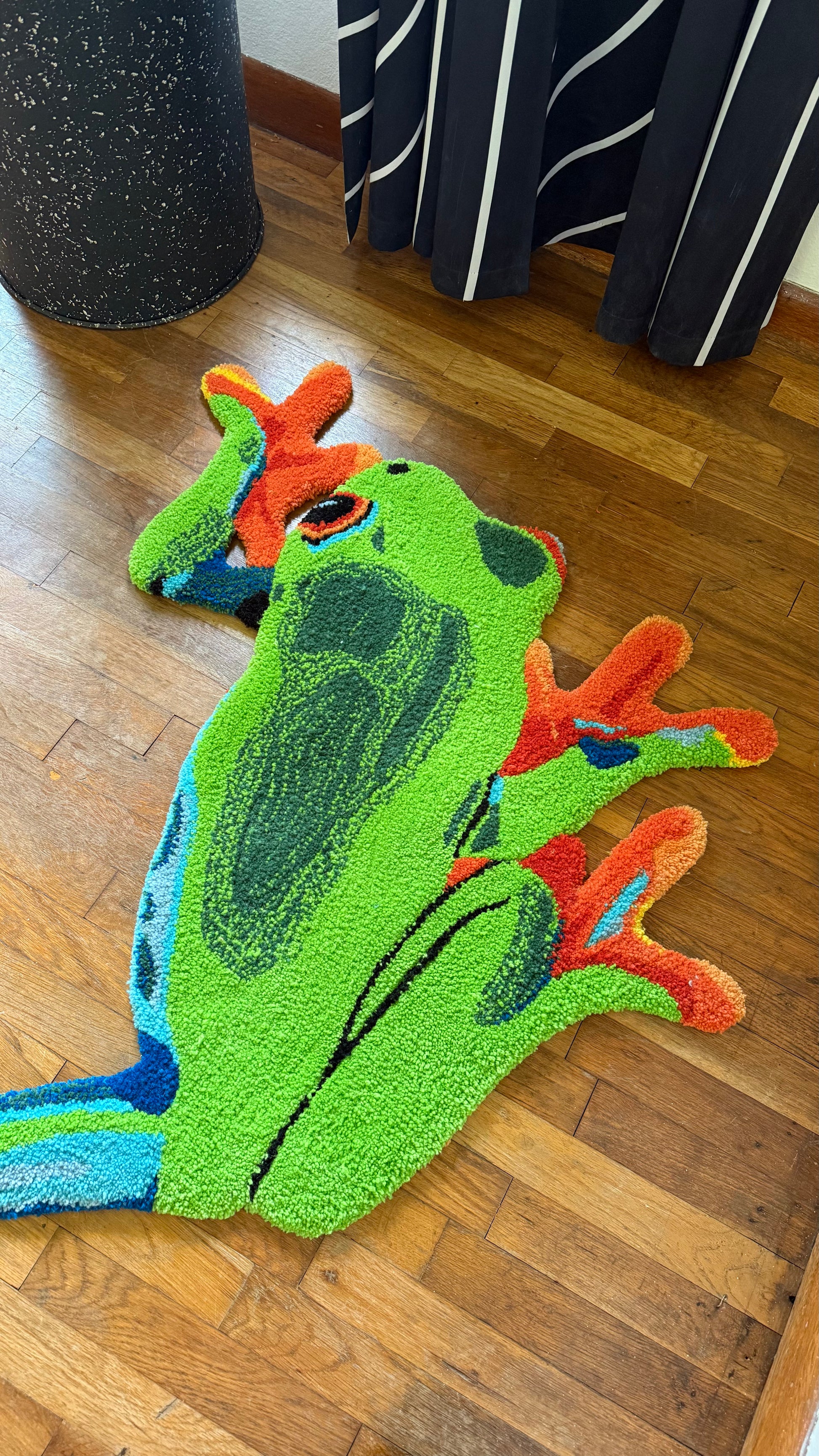 Larger than-life jumping tree frog handmade with 11 different shades of 100% New Zealand Wool. Approximately 55 inches tall x 23 inches wide