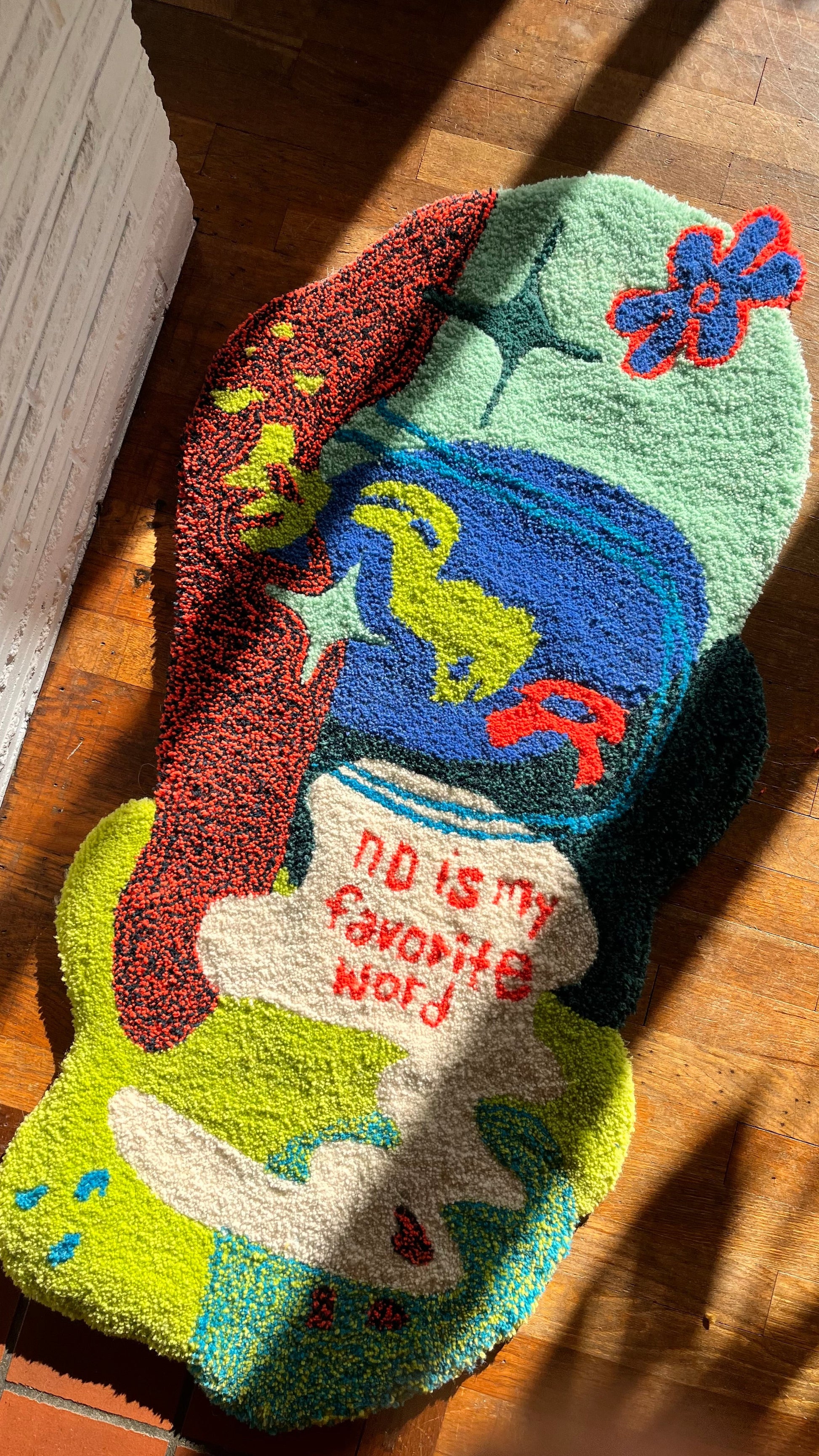 Hand-sketched and tufted with all New Zealand wool. Made in Bellingham, WA.